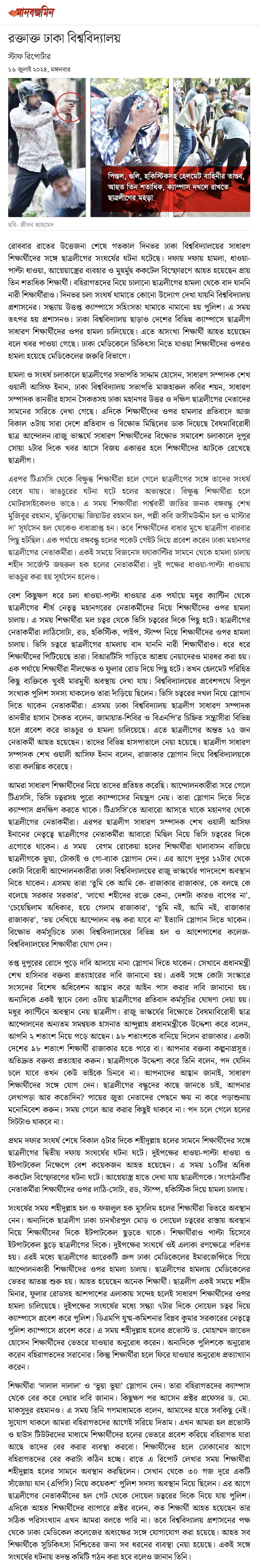 মূল উৎসপরদিন ১৬ জুলাই রংপুরে পুলিশের গুলিতে নিহত হন আবু সাঈদ।